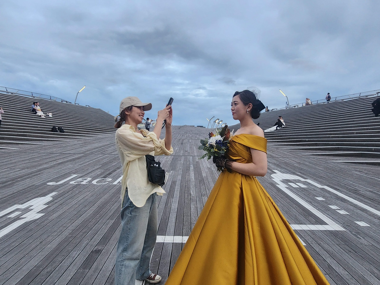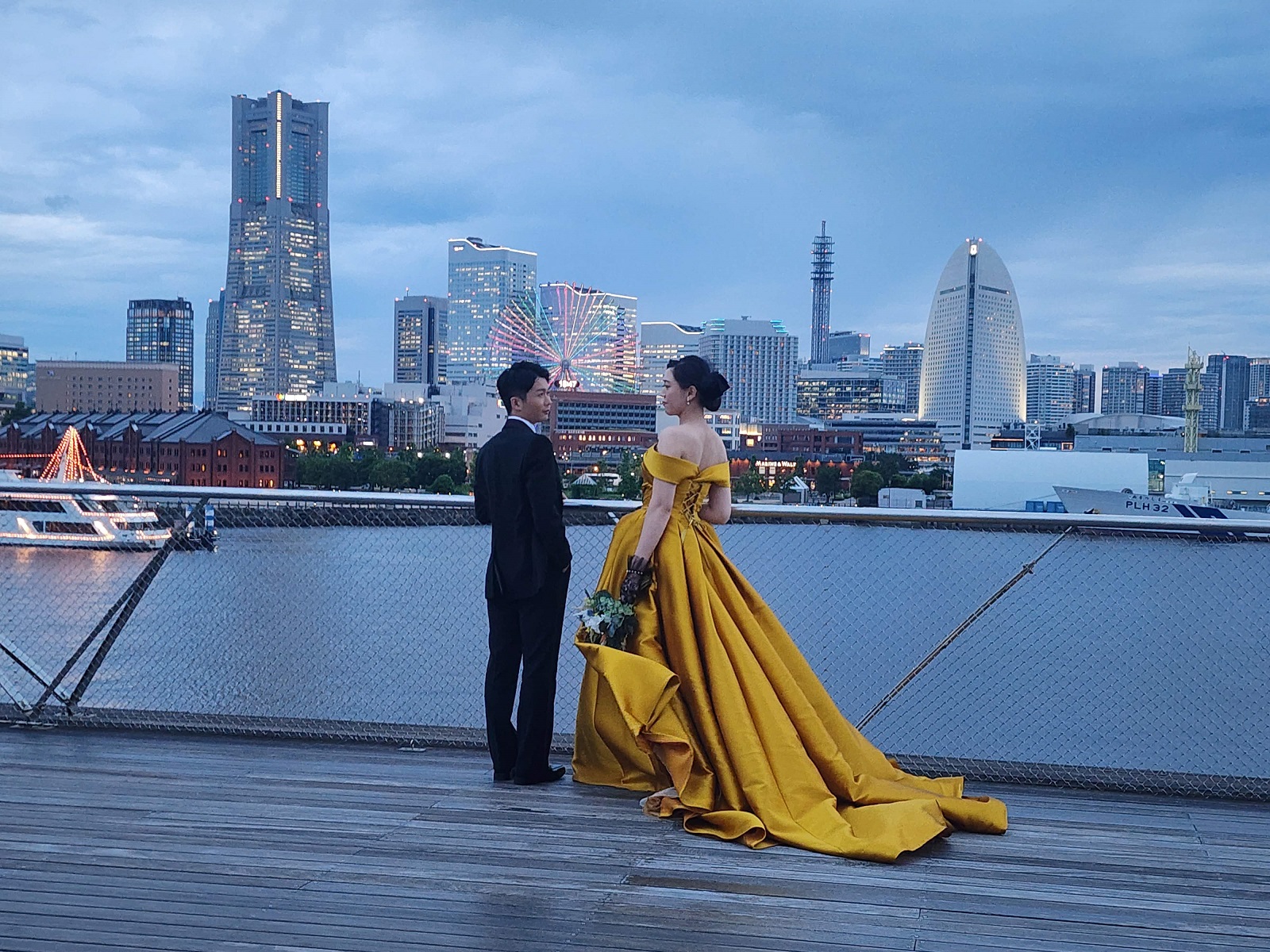 大さん橋は新郎新婦様とスタッフ含め6名までです。開港記念会館は13時~または16時からの2時間撮影ですが枠が非常に少ないので早めのご予約をお薦めいたします。